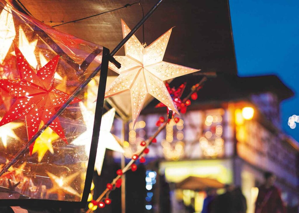 Der Weihnachtsmarkt begrüßt seine Gäste mit allerlei Schmackhaftem und Geschmackvollem. Die Winterwerkstatt bietet ein tolles Kreativprogramm und Weihnachtswichtel laden Kinder ein, gemein sam kreativ zu werden. 24 Tage Vorfreude garantiert bereits ab dem 1. Dezember der „Lebendige Adventskalender“, täglich um 17 Uhr, an Heiligabend um 12 Uhr auf dem Marktplatz.